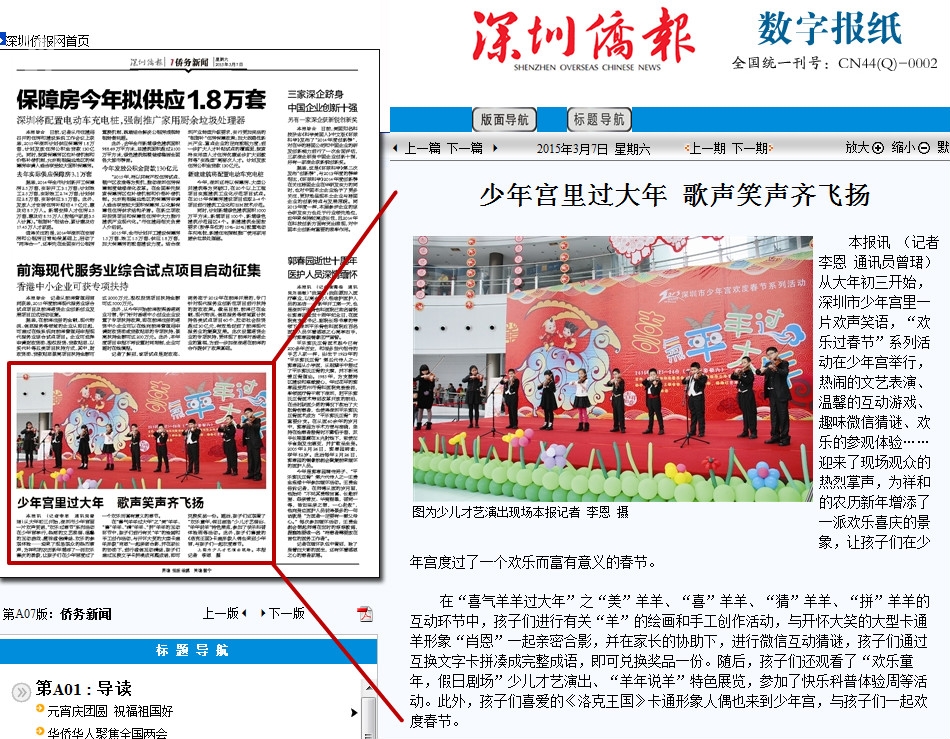 〖深圳侨报〗少年宫里过大年 歌声笑声齐飞扬